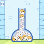 Plan carefully and drop adorable puppy-shaped balls into the bottle without spilling to complete each leve